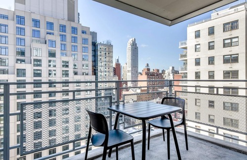 Show up and start living from day one in New York with this cozy one bedroom Blueground apartment. You’ll love coming home to this thoughtfully furnished, beautifully designed, and fully equipped Yorkville home with stunning balcony views over the city. (ID #NYC1326)