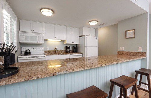 Escape to paradise at South Seas Beach Villa 2528, where stunning Gulf views greet you from your private screened lanai! This beautifully updated Gulf-front condo is an end unit, offering additional windows that flood the space with natural light and breathtaking views of the beach and Captiva's abundant wildlife. The spacious open-concept living, dining, and kitchen area creates the perfect setting for relaxation and entertaining. Elegant wood-look tile floors and sleek granite countertops add a touch of luxury throughout. The fully-equipped kitchen makes preparing meals a breeze, whether you're whipping up a casual breakfast or a gourmet dinner.