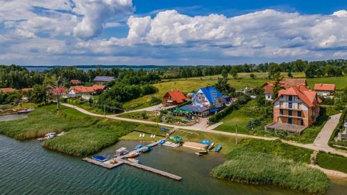 Niebieska Tawerna in Węgorzewo provides accommodations with free bikes, a garden, and a bar. This beachfront property offers access to a balcony, a pool table, free private parking, and free Wifi. The bed and breakfast offers lake views and a sun terrace. The units come with tiled floors and feature a fully equipped kitchenette with an oven, a dining area, a flat-screen TV with cable channels, and a private bathroom with bath and a hair dryer. A fridge, a stovetop, and kitchenware are also offered, as well as a kettle. At the bed and breakfast, units come with bed linen and towels. Guests can make the most of the warm weather with the property's barbecue facilities. You can play table tennis and darts at the bed and breakfast, and the area is popular for fishing and canoeing. Skiing and cycling can be enjoyed nearby, while a private beach area and water sports facilities are also available on-site. Indian Village is 13 miles from Niebieska Tawerna, while Boyen Fortress is 17 miles from the property. Olsztyn-Mazury Airport is 79 miles away.