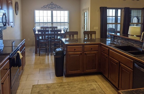Come enjoy this spacious, clean, & private condo with outdoor pool access. Just a 15-minute drive from the Hwy 76 'Strip' and a 5-minute drive from Silver Dollar City, this 5-bedroom, 3-bathroom house resides in the gated private neighborhood of Stonebridge Village. Our rental process & your stay are completely contact-free!