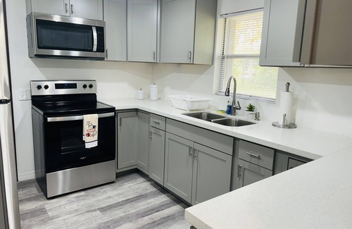 With three bedrooms and one bathroom, the cottage comfortably accommodates 6 guests . The spacious backyard can comfortably park (2) vehicles with room left over for a boat or kayak trailer. The kitchen is equipped with all the essentials to cook you catch of the day and favorite meals.
