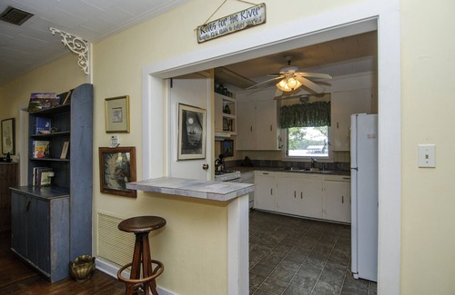Our vintage house is cozy and comfortable with with spacious rooms and inviting decor. Recently updated, it provides all the convenience you will need to enjoy a relaxing vacation...updated appliances, tile countertops, hardwood floors, a large pantry, and laundry area. We love your fur babies and they are welcome with a fee...(2 dogs max, and no cats, please) We do ask that they sleep in their own beds on the floor.