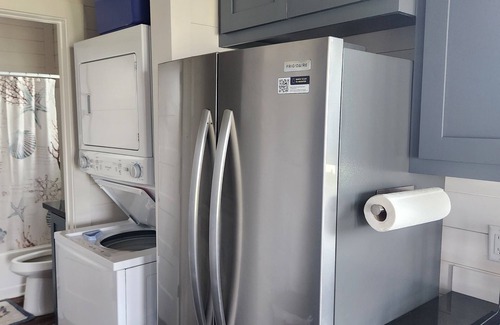 Welcome to your perfect beach& bay retreat! This charming 2-bedroom, 1-bath house on a quiet street offers stunning ocean and bay views just steps from beach access. Inside, enjoy a cozy living area and a fully equipped kitchen. Outside, relax at the tiki bar, rinse off in the outdoor shower, and grill on the charcoal BBQ. This cabin is ideal for couples or small families seeking a serene getaway. Nestled in nature lover's paradise for peaceful bird watching experience! Unwind at No Egrets!