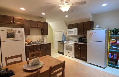 Relax at our ground floor apartment that sleeps 4-5 guests just a short walk to the beach. We have two bedrooms, 1 full bathroom, and a full eat-in kitchen. We offer speedy wifi and smart TVs in each bedroom.