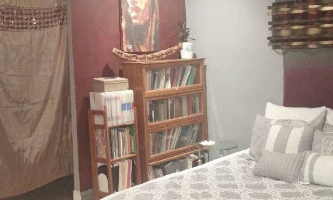 Room is newly decorated. Queen size bed, WiFi, 64”Smart TV, Refrigerator in room, sun room, work and eating space. Private entrance, NO Shoes please, Bathroom with soap, shampoo, etc. upstairs (approx. 25 steps). You will sleep comfortably here!