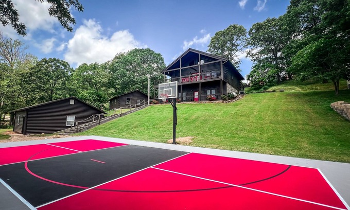 COTTAGE: Our 900 SQFT cottage is an awesome hangout for the kids (AND ADULTS)!! Complete with A/C and heat, it boasts a Ping Pong table, Air Hockey table, WIFI, TV, Dart Gun Wall, Nerf Basketball, and don't forget CORNHOLE!!!. Larger families/groups can also take advantage of the 2 sets of twin bunk beds and 1 bunk has a full bed over queen bed for sleeping!