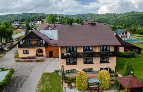 Offering mountain views, Noclegi z widokiem in Huba offers accommodations, a garden, and barbecue facilities. The property is around 9.1 miles from Niedzica Castle, 13 miles from Bania Thermal Baths, and 22 miles from Treetop Walk. There's a sun terrace and guests can access free Wifi and free private parking. At the farm stay, units come with a wardrobe, a flat-screen TV, a private bathroom, bed linen, and towels. There's also a well-equipped kitchenette in some units equipped with a microwave, a fridge, and a stovetop. The rooms are equipped with heating facilities. For guests with children, the farm stay provides outdoor play equipment. A water park is available on-site, and both skiing and cycling can be enjoyed close to Noclegi z widokiem. Zakopane Railway Station is 23 miles from the accommodation, while Zakopane Aqua Park is 23 miles from the property.