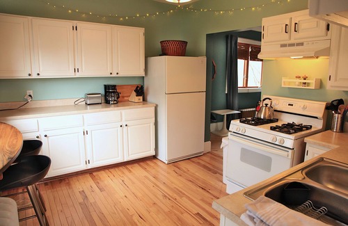 This quiet, low-key neighborhood is tucked down near Lake Superior in Duluth's Endion neighborhood. The house itself was built in 1890 and features a lake view from the patio, claw foot tub, radiators, MCM pieces and modern vintage charm. It's a 3 walk block to the lake walk where you can pick agates and watch the waves on beautiful Lake Superior.
