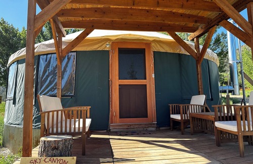Backdropped by stunning sandstone canyons, this modern boho yurt transports you to a world of ranches, vineyards, archaeological sites, and wildlife galore. From here, launch an epic outdoor adventure or reconnect with loved ones in a peaceful, unique setting that will make you want to return time and again. Gaze at a perfect star filled sky with virtually zero light pollution and get up close to ancient Pueblo dwellings and towers. The discoveries here are endless!