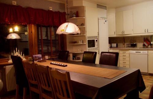 Nordic character is a recently renovated country house in Vidsel where guests can make the most of the garden and barbecue facilities. This property offers access to a terrace, a pool table, free private parking, and free Wifi. The country house has a picnic area and a hot tub. The air-conditioned country house consists of 4 bedrooms, a living room, a fully equipped kitchen with a dishwasher and a kettle, and 1 bathroom with a hot tub and bathrobes. Towels and bed linen are featured in the country house. The property has an outdoor dining area. For guests with children, the country house provides an indoor play area. Skiing, cycling, and hiking are possible within the area, and Nordic character offers ski storage space. Storforsen is 5.6 miles from the accommodation. The nearest airport is Arvidsjaur Airport, 52 miles from Nordic character.