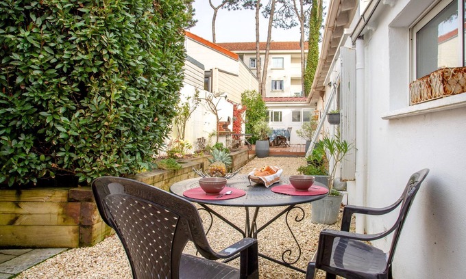 2-family house "Norecic". 2 houses in the residence. In the centre of La Bernerie en Retz, excellent location: right in the centre but still quiet, 300 m from the sea, 300 m from the beach. For shared use: courtyard, public parking 100 m. Shop, restaurant, bakery 100 m, 3 minute walk to the centre, bus stop "Bourg de la Bernerie en Retz" 800 m, railway station "La Bernerie en Retz" 200 m, sandy beach "Plan d'Eau" 300 m, thermal baths "Alliance Thalasso & Spa Pornic" 8 km. Golf course (18 hole) 10 km. Nearby attractions: Pornic 6 km, Planète Sauvage 26 km, Nantes 46 km, Ile de Noirmoutier 52 km, La Baule 52 km. Hiking paths: Promenade Wilson 300 m. Please note: Additional accommodations can be booked.