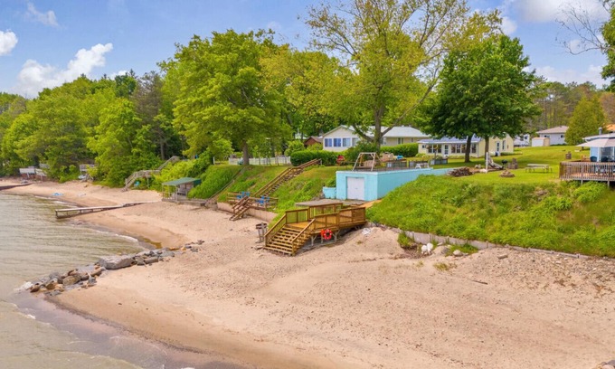 Cottage #3 is where cozy charm meets lake life fun. With 2 comfy bedrooms and space for up to 6 guests, it’s perfect for families or a small group looking to kick back by the water. Enjoy slow mornings sipping coffee in the open-concept kitchen and living room, and end the day roasting marshmallows at the shared fire pit just steps from your door. Whether you're grilling out, hitting the beach, or just vibing on the private deck, this place brings vacation mode to a whole new level.