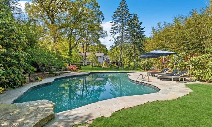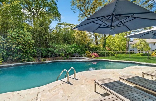 Escape the hustle and bustle without sacrificing convenience in this 3-bedroom/4-bed, just minutes from Mattituck's quaint Love Lane. Set amidst lush natural landscaping and towering bamboo, the home offers resort-like living with multiple outdoor areas to unwind: from poolside lounging to intimate dinners on the spacious patio. A chef's kitchen invites you to explore the bounty of North Fork farm stands, while dedicated work space, a home gym, and a cozy TV room provide added comforts.