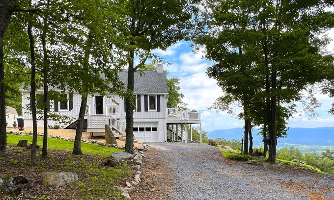 Welcome to North Mountain Manor, your own little piece of paradise. Look out the dining room windows or step out to the large deck to enjoy spectacular mountaintop views of the Shenandoah Valley & three mountain ranges. Sleep in peace in any of the 3 bedrooms with private full baths & Alaskan hand-hewn birchwood beds. Roam the private 18 acres, or wander the adjacent George Washington National Forest, step out the front door onto the North Mountain Blue Trail, or watch unrivaled sunrises and starry skies from any number of great outdoor spots on the property. Need peace and quiet? No neighbors; just forest. Minutes from sensational valley wineries & the quaint, historic Town of Woodstock.