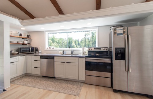 Escape to the serene and picturesque North Shore of Lake Superior with a stay at our charming modern cabin, the North Shore Gateway Retreat. Nestled just across the street from the majestic waters of Lake Superior, this quaint retreat offers the perfect blend of nature and convenience. This cozy and modern cabin is the perfect home base for all your adventures along Lake Superior's North Shore. Kick back and relax after a long day of exploring the great outdoors by crafting a meal on the outdoor grill and enjoying some quality time around the fire pit. Inside the cabin you can enjoy a fully stocked kitchen and multiple living spaces equipped with smart TV's where you can stream your favorite shows and movies. At the end of the day you can escape to the modern bathroom for a hot shower and then retreat to the bedrooms for a restful nights sleep in one of the plush queen beds. Firewood is readily available along the north shore at gas stations, hardware stores, and private sellers along highway 61 for the large solo stove fire pit.