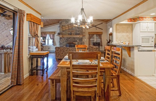 N WESTRIDGE RD. # 139 - 6 HOUSE - 6 BATH - BEDDING: BR #1 KING; BR #2 PYRAMID (2) (TWIN OVER DOUBLE); BR #3 QUEEN; BR #4 QUEEN; BR #5 QUEEN; APARTMENT (2) TWINS, (2) DOUBLES; SLEEPER SOFAS (2) ON SECOND FLOOR OF MAIN HOUSE; (1) ON MAIN FLOOR OF GARAGE APARTMENT. The home has 4 fireplaces - 2 wood - (wood provided) and 2 gas, to provide warmth on cold winter nights and 2 sunrooms with awesome views of the valley. Enough space to spend time with the entire family and quiet corners to recharge from the day's excitement, WIFI, and 6 TVs for entertainment. An apartment above the garage for single families or a kid's area with a foosball table and TV. A vast deck with a gas grill and furniture to relax on warm nights and watch the sunset. Relax in the hot tub after a day of enjoying your favorite activity. Free On-Call Resort Shuttle, Free WiFi, Free Long Distance Dialing.