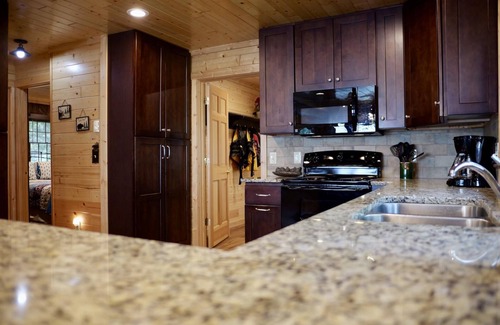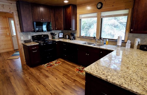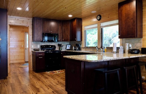 This beautiful home accommodates up to 10 people and is located on desirable Tourist Road. You'll have great access to off-roading and hiking trails, and some of the best fishing holes, restaurants, and shopping. Nestled into a private lot with trees on both sides and a nice plush lawn, there are horseshoes set up on the side yard and a pickleball net that can be set up on the paved parking area to enjoy.