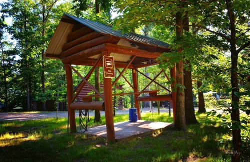 You'll have full access of the cabin, the charcoal grill, fire pit ring, and picnic table. You'll have shared access of the swimming pool, hiking trail, playground, horseshoe pits, and pavilion.