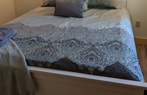 One of two relaxing refurbished cabins located on Goodwin's basin. You can watch the turtles right from the comforts of the living room or sitting by the fire table at night. Two bedrooms (one with a full size bed and one with a queen size bed) and a loft for the kids. Located right off of the Bridge Falls Path, making it convenient for biking or walking to town during the summer months and snowmobiling or cross country skiing during the winter months. Quiet clean beach located on Crescent Lake for you to enjoy with the kids, and access to a boat dock upon booking. No pets allowed.