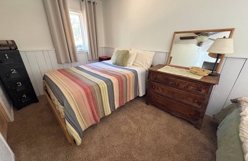 Waupaca is waiting for you! Relax in this 4-bedroom, 2-bathroom cabin that sleeps 9-10 people. With 3 queen beds, a double bed, and 2 twin beds, this cozy retreat is perfect for families or groups of friends. Enjoy the soothing ambiance of a traditional Northwoods cabin. Walk down to the private Ottman Lake where you can swim, kayak, or watch the migrating birds. Three kayaks, and a mini SUP are included. The cabin is complete with WiFi, washer & dryer, gas grill, full kitchen, large deck overlooking the lake, and ample parking for up to 8 cars. The 2 bathrooms offer a shower, bathtub, hairdryer, soap, shampoo, towels, etc. Book now and enjoy everything this fabulous cabin has to offer. Across the street, and around the corner, you can walk to 2 full service restaurants, (Indian Crossing Casino & Wheelhouse). You can take in live music, or just sit on the shore and have craft cocktails, wine, and a meal at Indian Crossing Casino. (Check their website.) Also, within the same walking distance, you can rent a pontoon boat at Becker's Marina, or Peterson's Marina, and cruise the Waupaca Chain of Lakes. This cabin is in the middle of the action with the serenity of a private lake.