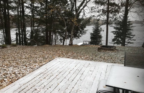 Spacious Lakehouse on the water with private walkout WI beach and pier. Full kitchen, bath, three bedrooms, futon, and twin bed. Fits 6 adults comfortably with extra sleep areas. Has fire pit, grill, 2 kayaks. Deck, bonfires, beautiful views, swimming, great fishing, RV trails, and snowmobiling are all available here! Spacious front and backyard with beautiful, relaxing views. Enjoy the Northwoods! We hope you like it as much as we do!