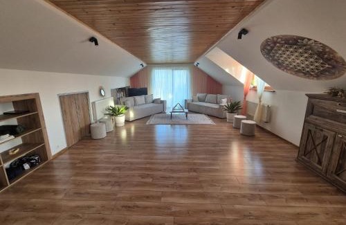10 miles from Agrokomplex Nitra in Sokolníky, Nosce Te Ipsum provides accommodations with access to a fitness room and steam room. This vacation home features free private parking, private check-in and check-out, and free Wifi. Mojmírovce Manor House is 18 miles away and Chateau Moravany nad Vahom is 30 miles from the vacation home. This vacation home includes 4 bedrooms, a living room and a flat-screen TV, an equipped kitchen with a dining area, and 2 bathrooms with a hot tub and a washing machine. There's also a seating area and a fireplace. Guests can relax in the garden at the property. Health Spa Piestany is 29 miles from the vacation home, while Chateau Appony is 6.8 miles from the property. Piesťany Airport is 30 miles away.