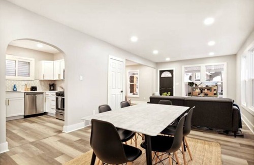 Experience a weekend immersed in the spirit of Notre Dame Football, with ample room to accommodate your entire family. Our delightful home, redesigned with a blend of contemporary allure and university fervor, comfortably sleeps up to 10 guests.