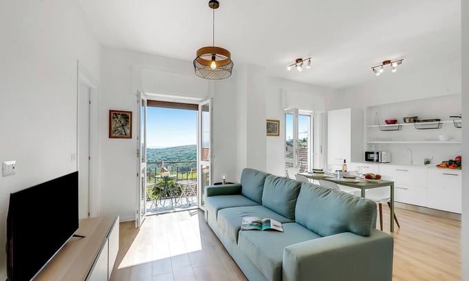 Nova Lake View Stresa Hill is a modern 2nd-floor apartment in a quiet and scenic location, offering breathtaking views of the lake and surrounding mountains. Ideal for a relaxing retreat, the apartment features 3 comfortable bedrooms to accommodate up to 7 guests. The bright and inviting living room is furnished with plush sofas oriented toward the lake, creating a perfect spot to unwind while enjoying the view or watching a film on the flat-screen TV. Glass doors open onto a private balcony, where guests can soak in the stunning panoramic scenery.