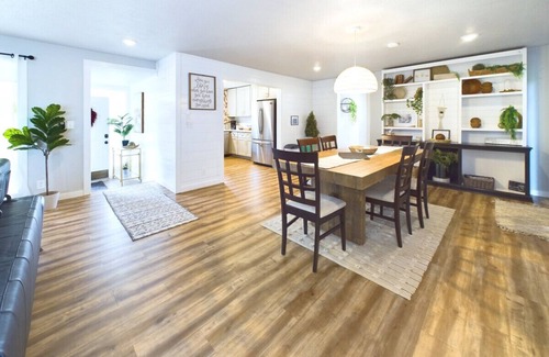 Freshly remodeled with new appliances, air conditioning, furniture, everything really! Located in a quiet neighborhood, fenced, you'll feel very much at home. Enjoy evenings or days on the deck as kids play in the giant yard away from any concern of traffic. This property is decorated in the 70's Boho Vibe with the modern flair. You'll feel like you are on the set of HGTV! The kitchen is fully stocked and large refrigerator to for long summer stays, or while hosting a wedding or party. These of course will need prior approval with guest count and nature of party. We respect our neighbors and want to keep good relationship with them. Please ask us questions rather than approaching their space.