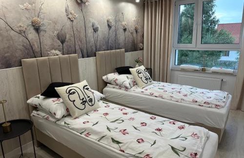 Nowy apartament z dwoma sypialniami i garażem offers accommodations in Biskupiec, 21 miles from Święta Lipka Sanctuary and 24 miles from Olsztyn Stadium. Housed in a building dating from 2025, this apartment is 24 miles from Olsztyn Bus Station and 17 miles from Townhall of Mragowo. There's a sun terrace and guests can use free Wifi and free private parking. Providing a balcony and garden views, the spacious apartment includes 2 bedrooms, a living room, flat-screen TV, an equipped kitchenette, and 1 bathroom with a walk-in shower. Towels and bed linen are provided in the apartment. This apartment is allergy-free and non-smoking. Outdoor play equipment is also available for guests at the apartment. Mrongoville is 19 miles from Nowy apartament z dwoma sypialniami i garażem, while Reszel Castle is 19 miles away. Olsztyn-Mazury Airport is 31 miles from the property.
