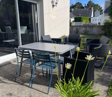 Featuring a garden, NPB Quimiac features accommodations in Mesquer. This beachfront property offers access to a balcony, free private parking, and free Wifi. The property offers barbecue facilities and outdoor furniture. Offering a terrace with sea views, this vacation home also has a flat-screen TV, a well-equipped kitchen with a dishwasher, an oven, and a microwave, as well as 2 bathrooms with a walk-in shower and a hair dryer. There's also a seating area and a fireplace. There is an on-site bar. Plage du Moulin is a few steps from the vacation home, while La Baule-Escoublac Train Station is 12 miles away. Montoir Airport is 22 miles from the property.