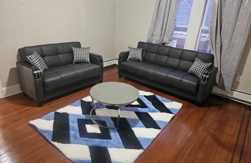 Consider this apartment your home away from home while you visit Newark. This marvelous property boasts three bedrooms, four queen beds, one sleeper sofa. Sleeps 9 ensuring a comfortable stay for all guests. With amenities like WiFi, AC, and a washing machine and dryer, fully stocked kitchen, your stay will be convenient and serene. The lovely living room provides additional space for relaxation. This apartment is located 2 minutes walk to Beth Israel Hospital, and bus stop to downtown Newark, Prudential Center. 30 mins to NYC Times Square. 20 mins to American Dream mall, and Met Life Stadium. Plenty of dining and shopping nearby. Plenty of off street parking available. Golfing, biking