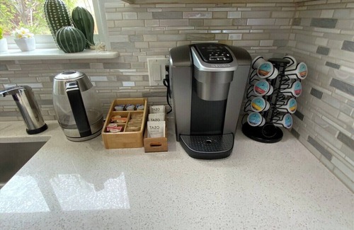 - Modern Kitchen – Fully stocked with cookware, pod + drip coffee makers, and essentials for home dining.