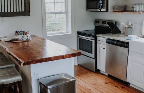 Our little Honey House was designed to be a luxury honeymoon home for our wedding venue. We have high quality bathroom and bedroom linens. The kitchen is stocked with beautiful stainless steel appliances and fixtures. The sitting areas and bathroom are trimmed with details that have been carefully chosen to fit the vision of our farm. Guests who stay here will enjoy complete privacy in our beautiful little home. It is sandwiched between two horse pastures and steps away from our tranquil pond.