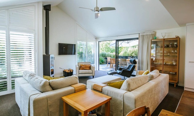 Best-rates for the Wanaka house starts from $753 per night with includes Entertainment, Barbecue/Outdoor Cooking, Kitchen, Air Conditioner, TV, Balcony/Terrace, Security/Safety, Wellness Facilities, Child Friendly, Internet, Laundry, Bedding/Linens, Fireplace/Heating StayAndPlay offers fully equipped golf villas, golf hotels, golf resorts, luxury golf cabins, and exclusive golf retreats, making it easier than ever to find your perfect golf escape — ideal for families, peaceful getaways, or pet-friendly retreats with the whole crew.