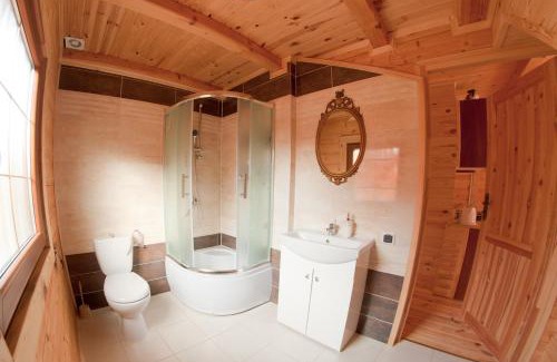 Offering free bikes, Ośrodek Wypoczynkowy Ranczo is located in Okuninka. Free Wi-Fi access is available in this resort. The accommodations in apartments and chalets will provide you with a flat-screen TV and a balcony. There is a full kitchenette with oven and a refrigerator. Featuring a shower, private bathrooms also come with towels. You can enjoy a garden view from all the rooms. At Ośrodek Wypoczynkowy Ranczo you will find a 24-hour front desk, a garden and barbecue facilities. Other facilities offered at the property include a children's playground and a beach volleyball pitch. An array of activities can be enjoyed on site or in the surroundings, including cycling, hiking and fishing. Guests can also enjoy a game of billiards. The property offers free parking.