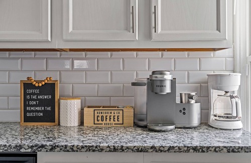 *Fully stocked kitchen including Keurig, drip coffee pot, coffee, sugar, and creamer