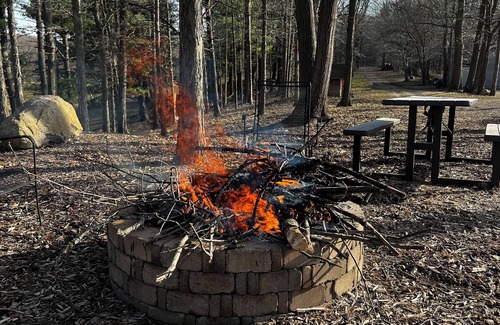 OakHill offers 20 acres for you, your family and pet to enjoy, including wide open spaces and two lakes for your boating, swimming and fishing pleasure ( catch and release). A 1/2 mile hike trail that’s completely private. If you bring a pet please keep them supervised we’d hate to scare the wildlife and our two orange tiger cats Mango and Skittles. They roam the property and are friendly. You will stay in our cozy hideaway camper that features 1 queen bed and 2 full size bunk beds.and all the amenities you’ll need. Just bring your clothes and food! It’s perfect for a small group of guests. With amenities like a fire pit, grill, two paddle-boats, catch and release fishing on the back pond only, WiFi, heating, and AC, your stay will be nothing short of enjoyable. Smoking is allowed but only outside.