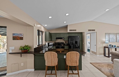 Beautiful interior with updates throughout the home. Fully equipped kitchen for all your culinary needs. Enjoy the convenience of being minutes from shopping, dining and outdoor activities. You will have access to watch the sunset and nature while soaking in the hot tub. Come experience the charm and serenity of Tucson in this lovely home.