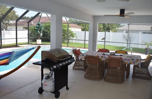 A true vacation paradise! Relax and unwind in the sunshine by the pool. The house is beautifully designed with modern amenities and cozy furnishings, creating a welcoming and comfortable atmosphere. You'll love spending your days lounging by the saltwater pool, grilling out on the patio, and soaking up the warm Florida sunshine. Come experience the ultimate vacation getaway at my Florida Pool House!