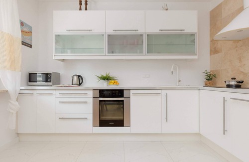 The carefully and stylishly designed interior of the apartment is suitable for 5 people - it's great for families! It is an excellent choice for travellers who do not compromise on style and comfort. The interior colour scheme and high quality furnishings enhance the atmosphere of the apartment. The unique location will satisfy even the most demanding guests. The space of the property offers a spacious living room with a kitchenette, two bedrooms, a balcony and a bathroom with a bath. The living area, equipped with a comfortable sofa and a Smart Tv with cable channels, is the perfect place to relax and unwind. The living room also has a table and chairs, ideal for enjoying meals together. Each of the two bedrooms has a large double bed and one of the bedrooms also has a desk and chair - perfect for remote working or studying. There is also a comfortable sofa bed in the living area. Guests can also relax on the balcony, which is equipped with garden furniture - great for morning coffee or relaxing outdoors after a busy day. The fully equipped, tasteful interiors are stylishly decorated and meticulously finished. Sublime and aesthetically pleasing décor with a host of amenities and top quality furnishings ensure maximum comfort during your stay. Multimedia facilities include a Smart Tv with cable access and Wi-Fi Internet. Complimentary toiletries, towels and bed linen are provided to ensure a good start to each night's stay. Parents travelling with a child can also book a cot for their little one. For guests arriving by car, there is a parking space in the garage - a great advantage in the capital. The location of the apartment will certainly allow you to feel the atmosphere of the city among the surrounding attractions.