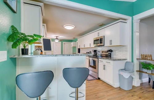 Welcome to your perfect Florida escape—where comfort, convenience, and relaxation come together. This spacious 4BR/2BA home sleeps 8 and is packed with thoughtful touches to make your stay effortless. Unwind in the private screened-in pool, enjoy home-cooked meals in the fully equipped kitchen, or sip coffee in the sunroom. With kid-friendly amenities, a dedicated workspace, and pet-friendly policies, you've found a place that truly feels like home. Located just minutes from top attractions, it's your ideal base for adventure or rest.