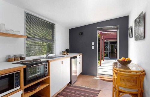 Enjoy fresh produce from the garden during your stay. Fresh fruit, veges, and herbs for a salad. The owners have a wonderful art collection that overflows to this charming apartment, and an extensive and diverse garden to wander through.