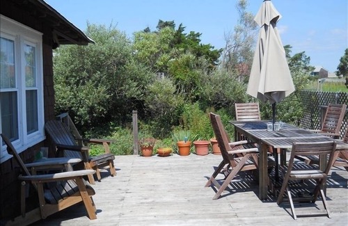 Charming beach house, 4 bedrooms, kitchen, social living room, dining room, and huge deck overlooking vast field. 1.5 baths, outdoor shower, private lot, internet, internet tv, bikes, beach chairs, boogie boards, SUPs, garden, games. One block from the beach and bay. Supermarket, restaurants and bars close by. Ocean Beach restaurants, shops, and bars one mile away. Sunken Forest National Park one mile away. This is a classic beach house built in 1904 (read reviews to get an idea of the vibe).