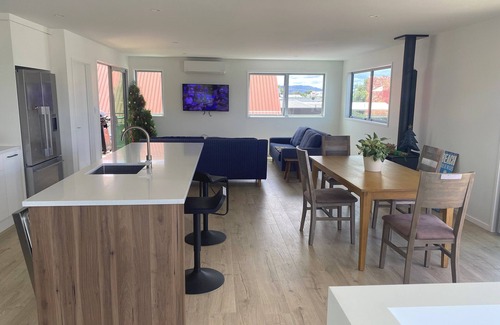 Ocean Bliss is a brand-new 4-bedroom home, ideally located between the Surf Club and Whangamatā's main shopping hub, offering easy access to local amenities and the beach. Comfortably sleeping 6-8 guests, the property features modern furnishings, including a King bed, three Queen beds, and a rumpus area that can accommodate additional guests. Enjoy a spacious outdoor area with a BBQ, beach shower, and ample parking, including room for a boat.