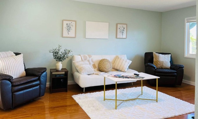 A delightful 3-bedroom, 2-bathroom retreat that offers both comfort and entertainment in the heart of La Puente. The master bedroom features a luxurious king-sized bed, while the other two bedrooms each offer cozy queen-sized beds. For additional guests, a full-size sofa sleeper provides extra comfort.