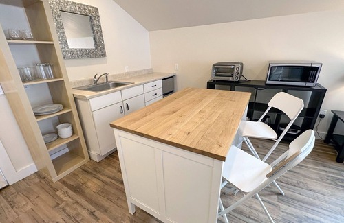 This cozy studio, named Agate, can be found in building #2, on the upper level. It is very private as it is the only studio in the building. With a comfortable living area and king-sized bed, an expansive view, and kitchenette, it's hard to imagine needing anything else! Take the slider out to the deck and enjoy the sights and sounds of the surf, providing the ultimate in relaxation.