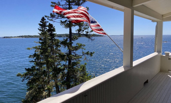 Exquisitely maintained 5 bedroom/2 bathroom cottage right on the ocean. Family owned since 1891. Step back in time into a cottage furnished with antiques and historical items from Maine. Incredible views of the ocean on all sides. Spacious bedrooms, clawfoot tub, indoor and outside shower, huge eat in kitchen stocked with cookware of all kinds, a beautiful wrap around upper deck with lounge chairs for views of the sunrise over the ocean, a sunlit cozy reading nook stocked with books, steps from a private beach cove and dock to swim, at the private end of a beautiful drive-on island with a tennis and pickleball court, and an historic casino building. All this is just a short drive into Boothbay Harbor for dining & nightlife, boat tours, shopping and fun. This cottage has been a treasure for our family and I am finally opening it up for some responsible and respectful folks.