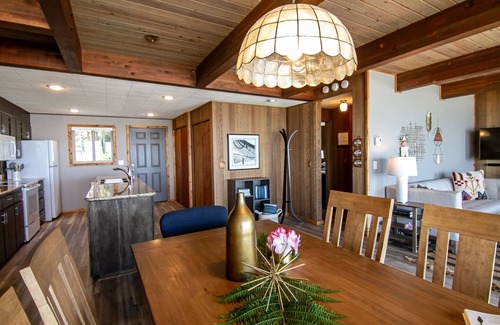 Your Oregon coast dream awaits you at this fun, bohemian-inspired, 3 bedroom, 2 bath home that sleeps 4. This cute oceanfront home boasts an outdoor deck, a wall of windows facing the Pacific, and a cozy wood-burning fireplace - all features creating the perfect ambiance for entertaining friends and family. This casual space promotes conversation, reading, and listening to music or playing games, and it welcomes you to sit back, put your feet up and not worry about a thing! Enter into the house and look straight out at the ocean from the open living room, dining room and kitchen. From the dining table you can enjoy the ocean views while eating, sipping, chatting, or playing a board game. One bedroom and bathroom is located on the main floor for easy access. On the second floor, there is the perfect space for spending some indoor leisure time with a full-size pool table. Chalk up your pool cue and get ready to play some billiards! There are two more bedrooms and a shared bath tucked away on the second floor.