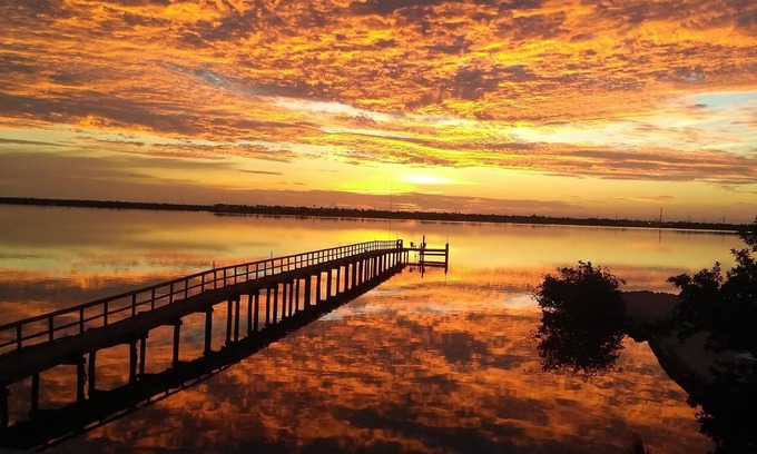 Out front this property has 1 acre of bay bottom & 290 ft private dock for mooring your boat, water and a hose at the end of the dock for washing your boat and/or cleaning fish.